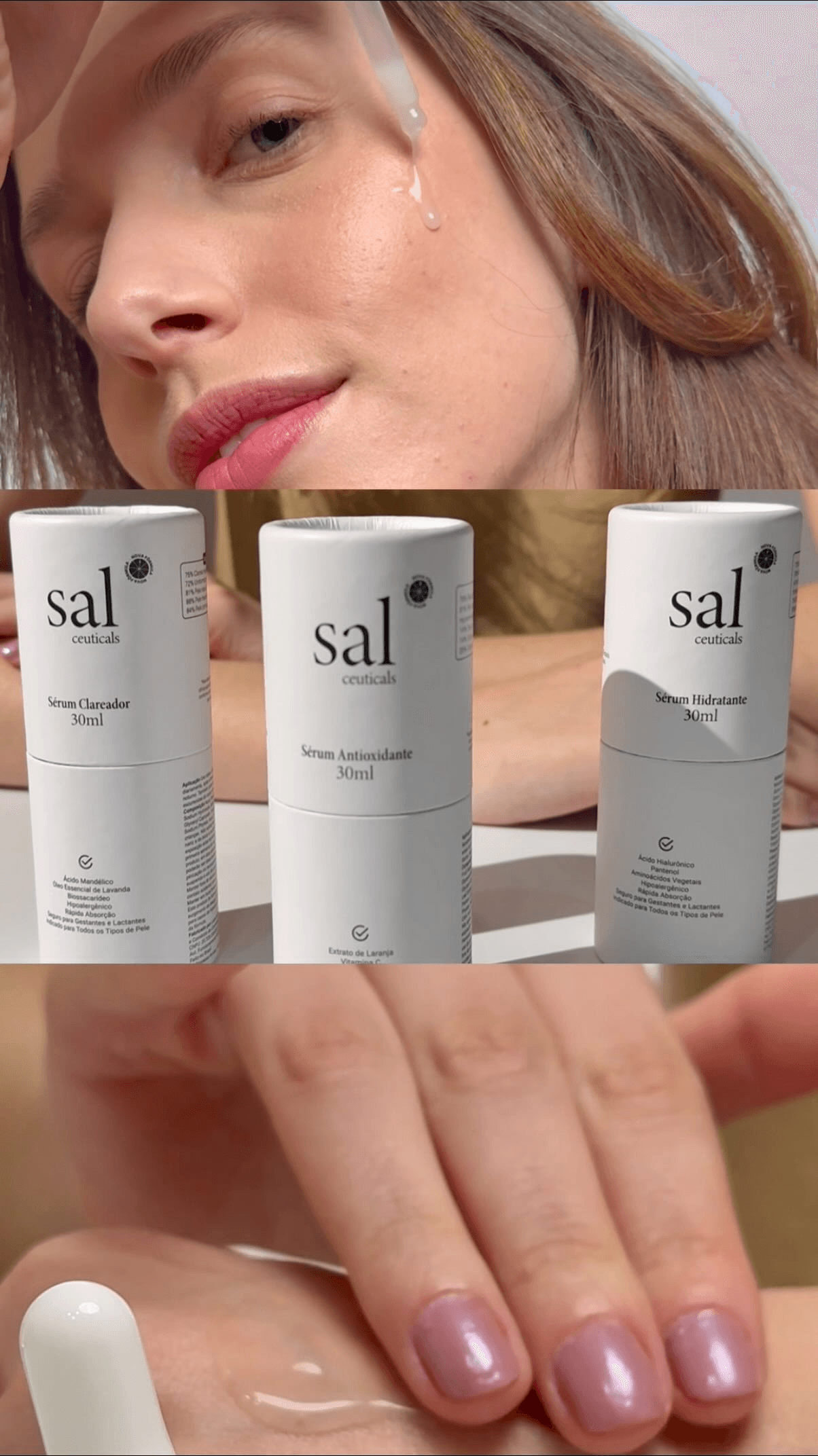 Ilumina, protege contra radicais livres, suaviza rugas e estimula o colágeno.